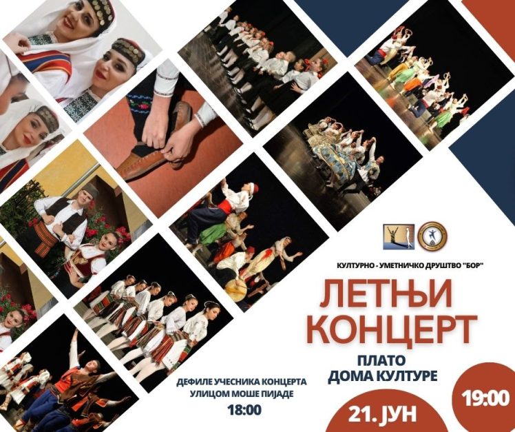 Letnji koncert Kulturno umetničkog društva „Bor“ koje organizuje Centar za kulturu, biće održan u utorak, 21. juna od 19 časova na platou Doma kulture.