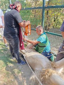 „Ovog starog lepotana mi odаvno lečimo i brinemo o njegovom zdravstvenom stanju, sada je problem što je on malo stariji ljubimac zoo vrta, njemu je već 15 godina i ulazi u gerijatrijske probleme. Prošle godine je hramao i uradili smo snimak i dijagnostikovali da je došlo do kalcifikacije ligamenta desne noge i to smo uspešno sanirali. Moramo da znamo da to nije kućni ljubimac i procedura lečenja je sasvim drugačija nego kod kućnih ljubimaca, kuca i maca. To je jedna zver kojoj određeni ljudi mogu da priđu na 5-6 metara tako da je i aplikacija lekova teška. Imao je probleme i sa bubrezima i to smo lečili, danas ćemo uraditi i urino kulturu, kao i sve preglede koje možemo da uradimo dok je pod narkozom. Uradićemo i rentgensku dijagnostiku kako bi videli kakve su promene na kičmi, sumnjamo da su to teške spondilotristične promene s obzirom da ne može lako da se kreće“, istakao je Srećko Radojičić, specijalista veterinarske hirurgije.